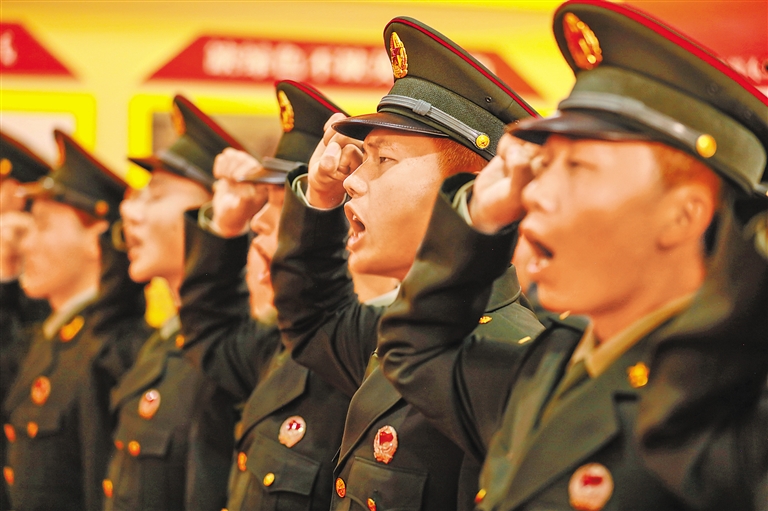 西藏軍區(qū)保障部某管線大隊(duì)組織新兵重溫入伍誓詞,激勵(lì)大家不忘初心、建功軍營(yíng)。胡強(qiáng) 石建 劉雪峰 攝