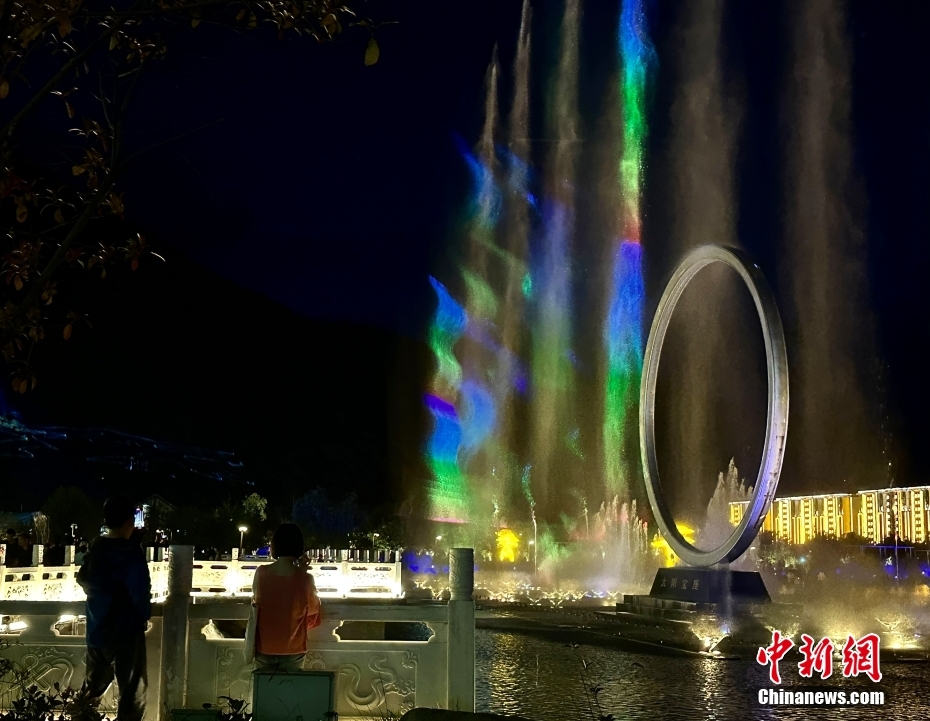 音樂(lè)水秀噴泉位于工布公園人工生態(tài)湖中。錢(qián)姣姣 攝