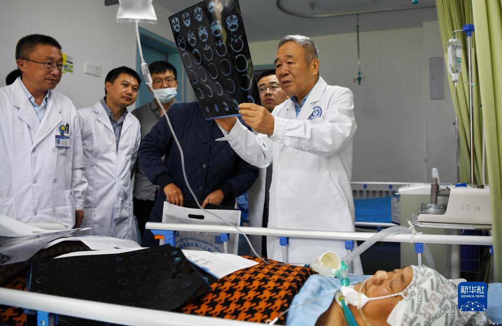 8月10日,中國(guó)科學(xué)院院士、首都醫(yī)科大學(xué)附屬北京天壇醫(yī)院神經(jīng)外科學(xué)中心主任醫(yī)師趙繼宗(后右一)在西藏自治區(qū)第二人民醫(yī)院為患者會(huì)診。新華社記者 張汝鋒 攝