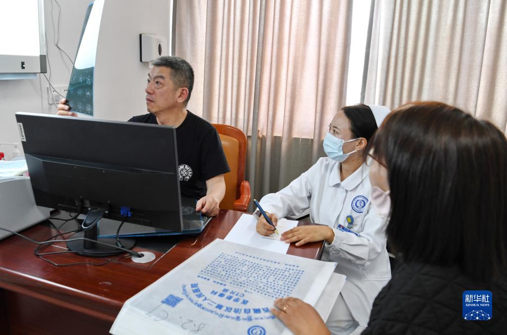 8月10日,北京天壇醫(yī)院神經(jīng)外科學(xué)中心主任醫(yī)師隋大立(左)和西藏自治區(qū)第二人民醫(yī)院的醫(yī)生為患者義診。新華社記者 張汝鋒 攝