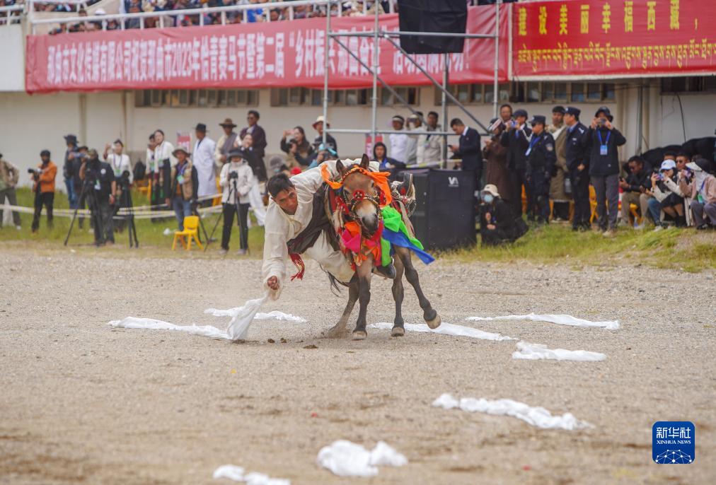 8月10日,騎手進行馬術表演。新華社發(fā)(旦增努布攝)