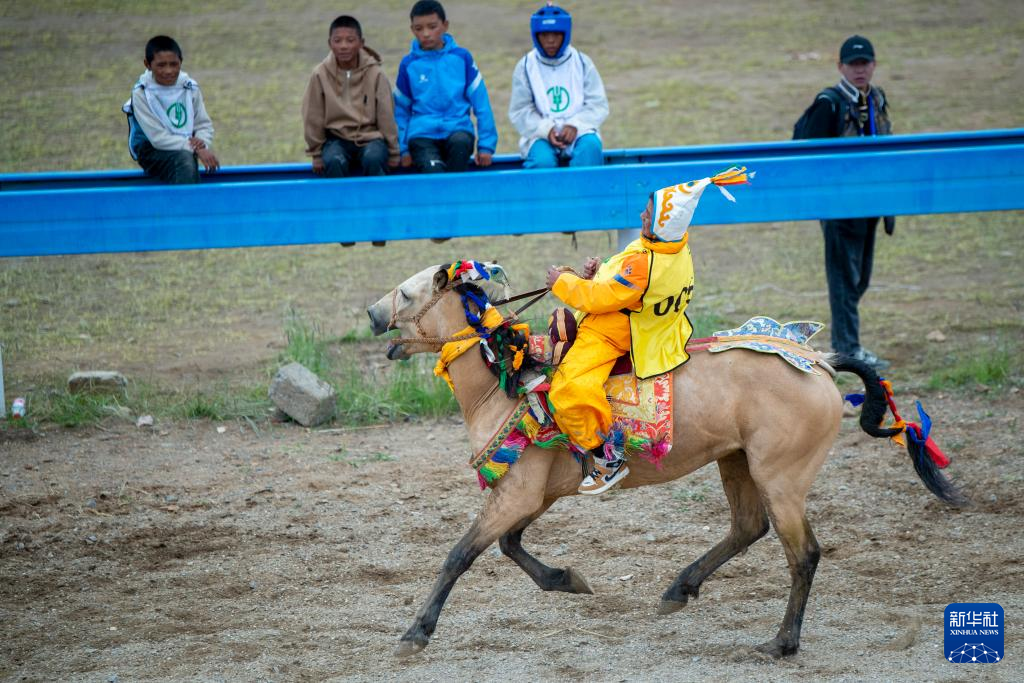 8月11日,馬兒“隆達(dá)熱巴”在賽馬比賽中。新華社發(fā)(旦增努布攝)?
