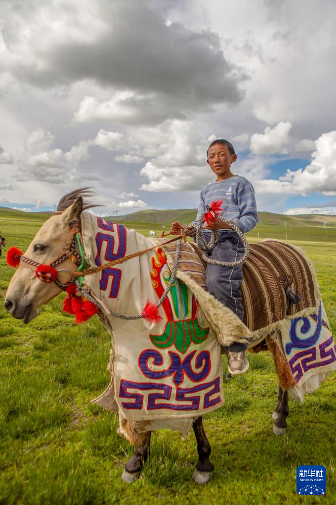 次扎達(dá)的兒子列熱覺(jué)旦和馬兒“隆達(dá)熱巴”(8月9日攝)。新華社記者 邵澤東 攝