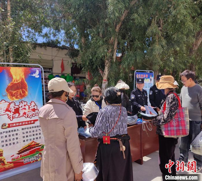 圖為普法宣傳活動現(xiàn)場,民警向民眾講解掃黑除惡相關(guān)知識。黃創(chuàng)偉 攝