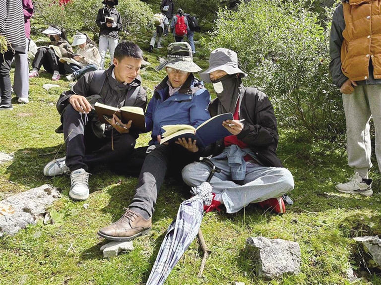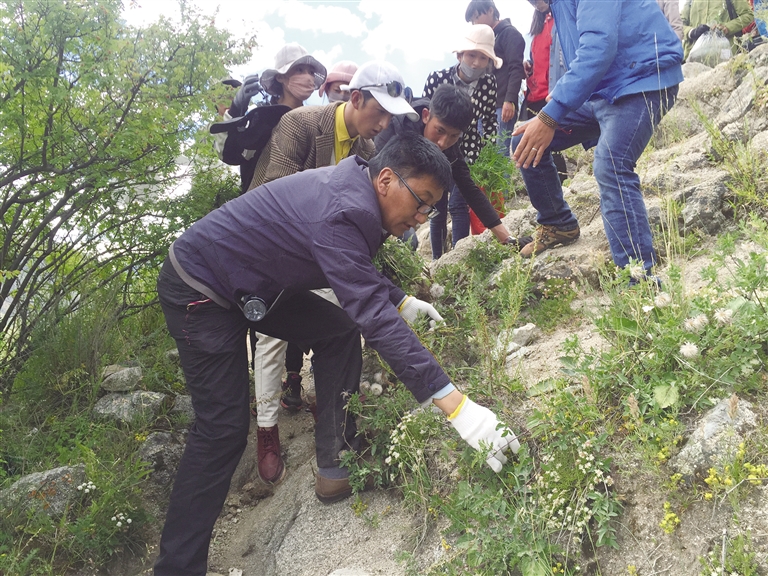 洛桑尼瑪帶領(lǐng)學(xué)生上山采藥識(shí)藥。圖由洛桑尼瑪提供
