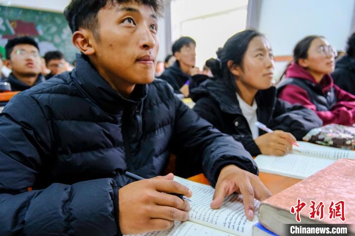 10月12日,西藏藏醫(yī)藥大學一課堂內(nèi),學生們在學習藏醫(yī)藥典籍《四部醫(yī)典》內(nèi)容。中新社記者 江飛波 攝