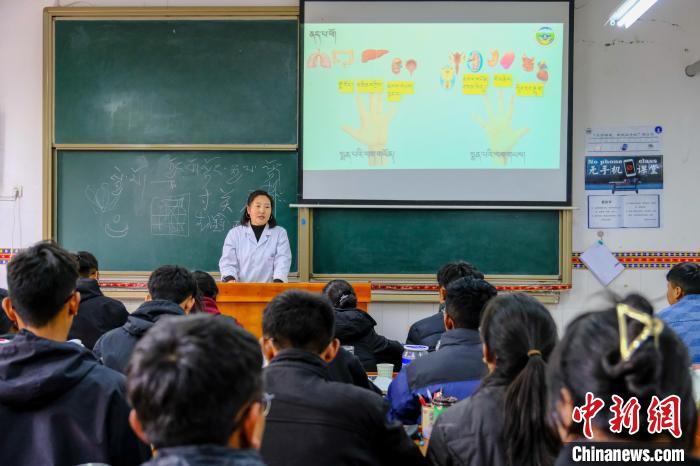 10月12日,西藏藏醫(yī)藥大學一課堂上,老師向同學們講述《四部醫(yī)典》中脈診相關(guān)內(nèi)容。中新社記者 江飛波 攝