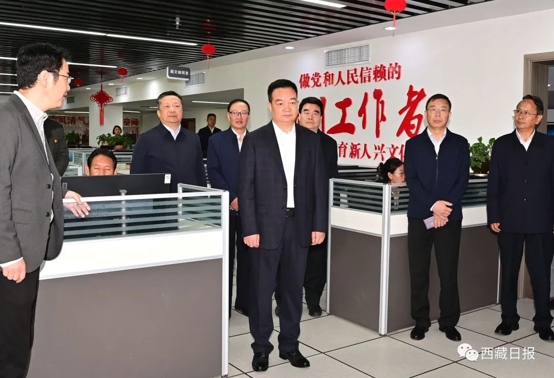 2023年9月25日,自治區(qū)黨委書記王君正來(lái)到西藏日?qǐng)?bào)社、西藏廣播電視臺(tái)調(diào)研。這是王君正在西藏日?qǐng)?bào)社詳細(xì)了解市場(chǎng)化運(yùn)營(yíng)、全媒體傳播體系建設(shè)、媒體深度融合發(fā)展等情況。記者 旦增西旦 攝
