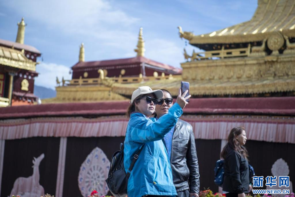 10月18日,游客在大昭寺合影留念。新華網(wǎng) 司秦菱 攝