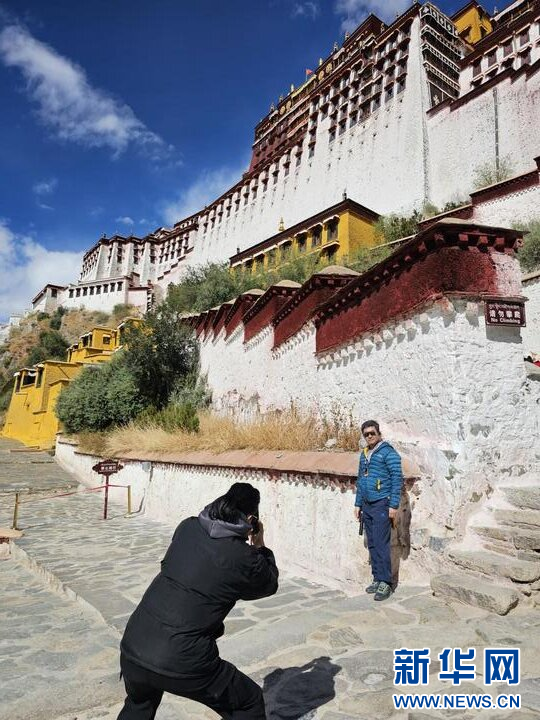 10月18日,游客在布達拉宮前拍照留念。新華網(wǎng) 蘇思源 攝