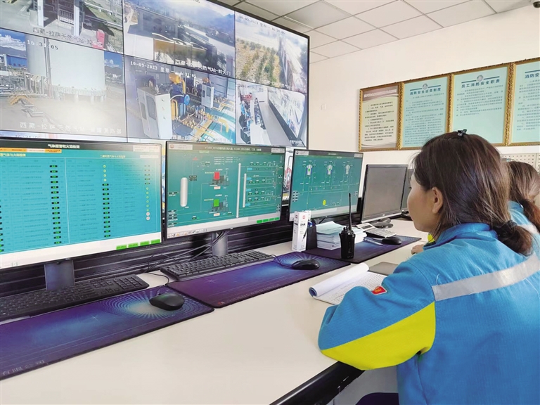 拉薩暖心公司工作人員通過中控系統(tǒng)監(jiān)控拉薩天然氣站安全情況。
