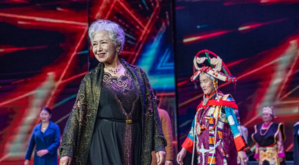 10月23日,“藏秀”模特隊(duì)的模特們?cè)谧咝?。新華社發(fā)(丁增尼達(dá)攝)