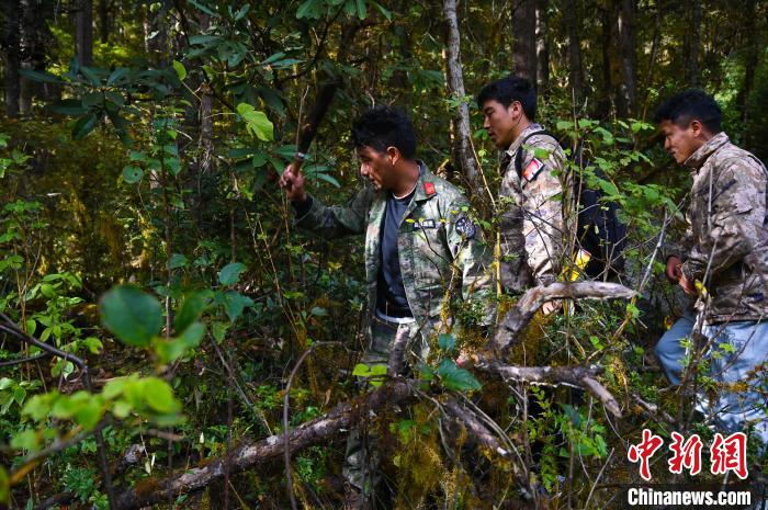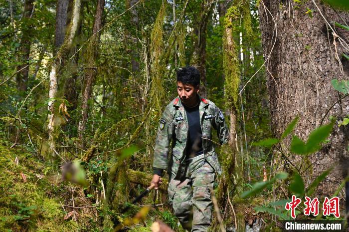 走進(jìn)原始森林,無(wú)路可言,他們用刀具清出一條通道來(lái)。地形復(fù)雜,灌木叢生,大家深一腳淺一腳前進(jìn),巡邏時(shí)還得注意蛇蟲。上坡下坡間,索朗頓珠是速度最快的,外號(hào)“山羊”由此得來(lái)。