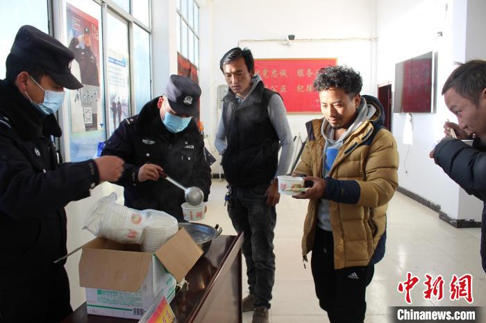 圖為西藏日喀則邊境管理支隊(duì)魯魯邊境檢查站民警在便民服務(wù)室為旅客提供暖心服務(wù)。魯魯邊境檢查站供圖