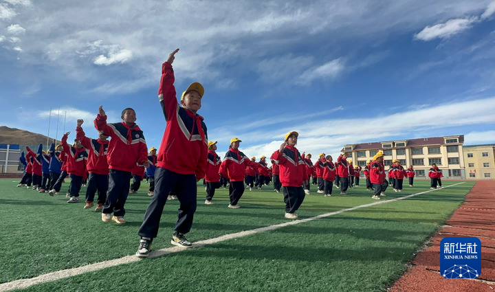 10月13日,在西藏那曲市班戈縣中石化小學(xué),學(xué)生在操場上做運(yùn)動(dòng)。新華社發(fā)(王敬 攝)