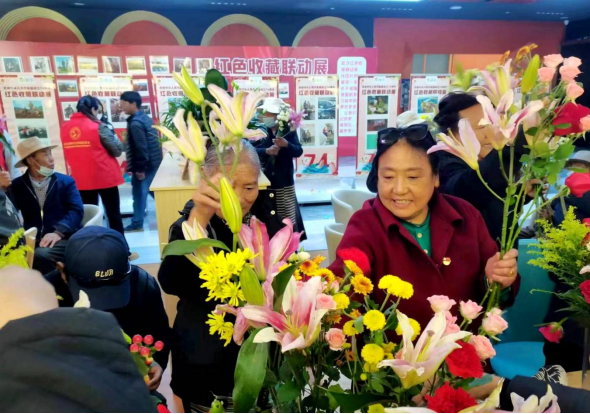 圖為城關區(qū)桑伊社區(qū)開展重陽節(jié)敬老活動。??