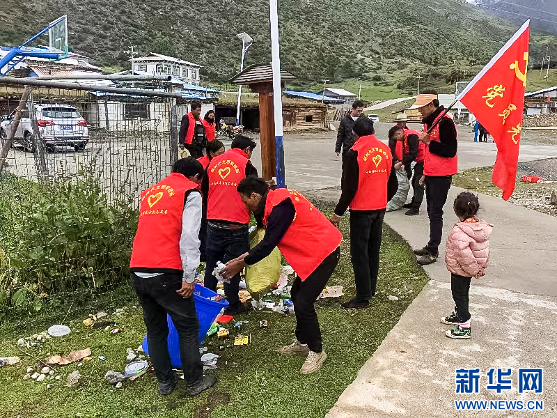 西藏昌都八宿縣然烏鎮(zhèn)來(lái)古村組織“冰川上的紅色家園”志愿服務(wù)隊(duì)開展環(huán)境整治活動(dòng)(8月5日攝)。新華社發(fā)