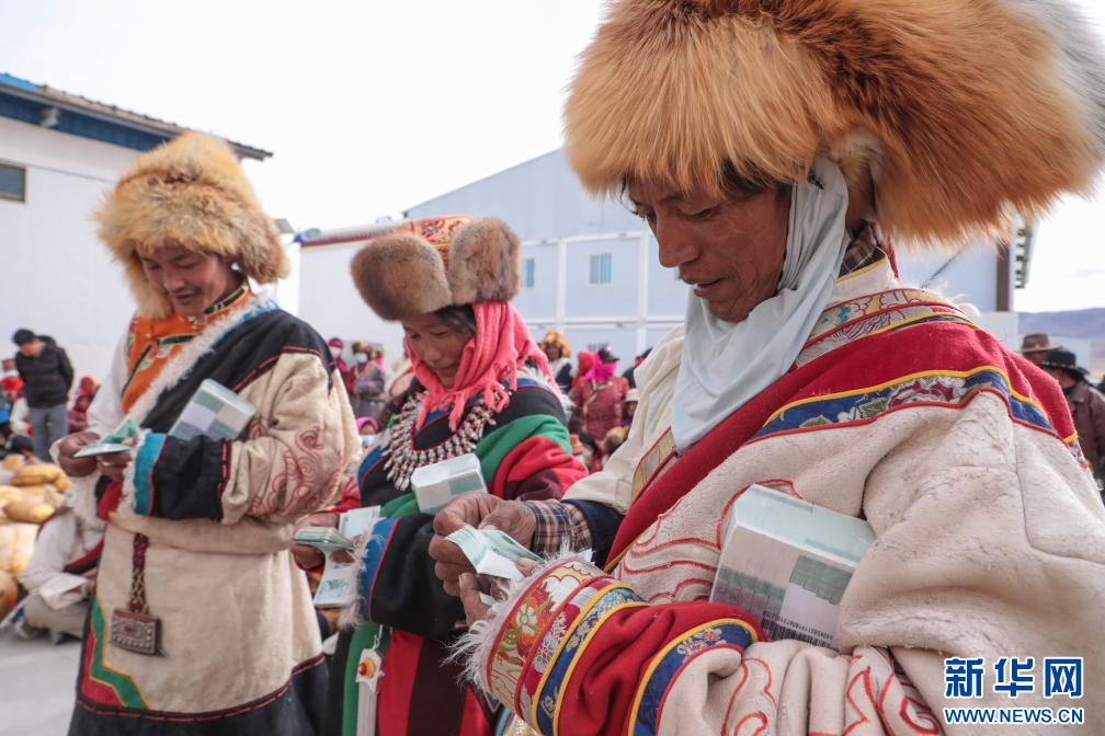 合作社社員領(lǐng)到現(xiàn)金分紅(11月28日攝)。新華社發(fā)(索朗仁青 攝)