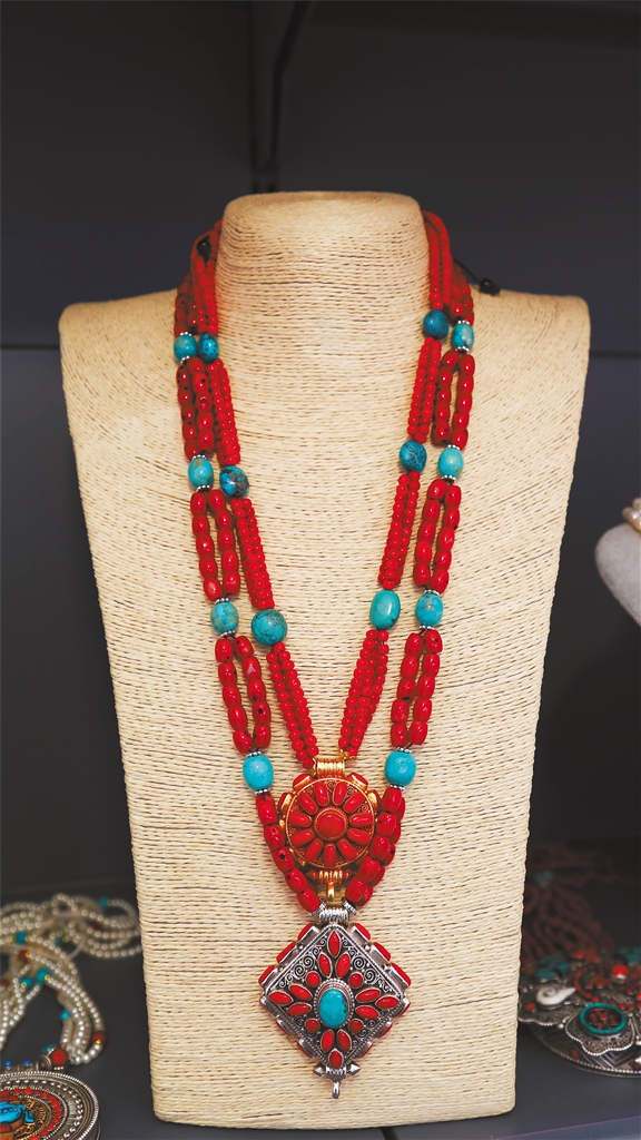 圖為物交會(huì)現(xiàn)場(chǎng)展出的藏式項(xiàng)鏈。