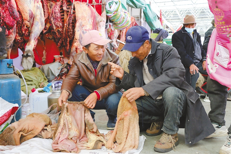 山南冬日的清晨,暖陽(yáng)照耀下的雅礱大地,人頭攢動(dòng),“煙火氣”旺盛。