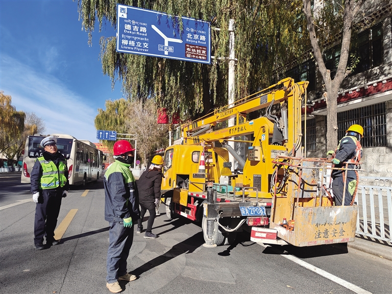 “結(jié)合拉薩市城鄉(xiāng)環(huán)境綜合大整治,我們在開展道路交通整治行動中,積極聯(lián)合園林部門對于道路兩旁樹枝遮擋交通信號燈、指示標(biāo)牌和電子監(jiān)控探頭等問題進(jìn)行全方位整改,此次整改點(diǎn)位155處,確保轄區(qū)道路交通安全暢通。在此,提醒廣大交通參與者,遇到修剪樹枝車輛,請減速慢行,確保交通安全?!崩_市公安局交警支隊(duì)城南大隊(duì)副大隊(duì)長張浩表示。