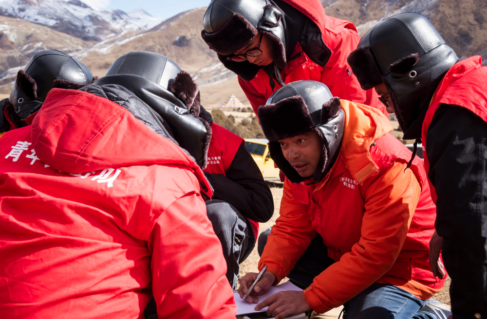 索縣榮布至丁青縣巴達(dá)35千伏線路工程負(fù)責(zé)人黃小洪在現(xiàn)場開展線路弧測量教學(xué)。(趙清鵬 攝)