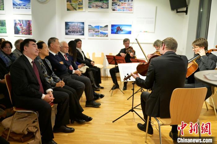 奧地利萊興菲爾德四重奏樂隊( Lerchenfeld-Quartett)在“和美西藏”攝影展開幕式上演奏小約翰·施特勞斯的《皇帝華爾茲》。歐洲時報記者 周修怡 攝