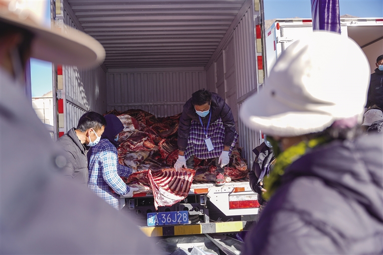 12月15日,由拉薩市農(nóng)業(yè)農(nóng)村局承辦的“2023年拉薩市牦牛肉集中上市銷售活動(dòng)”正式開啟,該活動(dòng)為期7天,共計(jì)投放48萬斤牦牛肉。記者了解到,為了讓市民群眾買到放心肉,此次活動(dòng)所出售的牦牛肉均產(chǎn)自拉薩本地,且必須經(jīng)產(chǎn)地檢疫合格后方能進(jìn)行銷售。