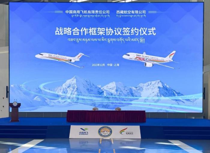 據(jù)“西藏航空”公眾號(hào)消息,12月17日,西藏航空與中國(guó)商飛公司簽署戰(zhàn)略合作框架協(xié)議,共同推進(jìn)研制具有我國(guó)自主知識(shí)產(chǎn)權(quán)的國(guó)產(chǎn)大飛機(jī)高原機(jī)型。