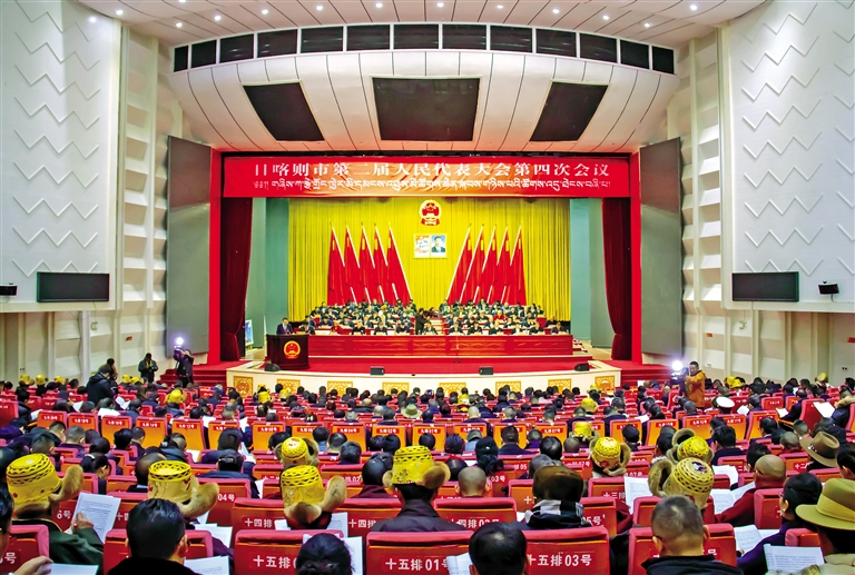 圖為日喀則市第二屆人民代表大會第四次會議開幕現(xiàn)場。