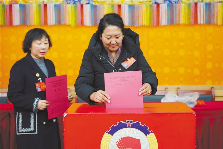圖為政協(xié)委員在投選票。