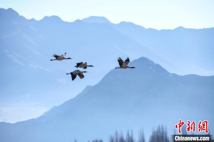 圖為在日喀則市拉孜縣越冬的黑頸鶴。貢嘎來(lái)松 攝