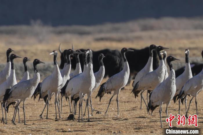 1月10日,西藏雅魯藏布江中游河谷黑頸鶴國(guó)家級(jí)自然保護(hù)區(qū)日喀則片區(qū)拉孜縣曲瑪鄉(xiāng)境內(nèi),大量越冬的黑頸鶴翩翩起舞,在濕地和農(nóng)田間覓食、嬉戲。近年來(lái),隨著國(guó)家加大青藏高原生態(tài)保護(hù)力度,西藏多措并舉實(shí)施生態(tài)建設(shè),廣大農(nóng)牧民民眾保護(hù)野生動(dòng)物的意識(shí)不斷提升,黑頸鶴及其棲息地得到了較好的保護(hù),黑頸鶴數(shù)量逐年遞增。據(jù)悉,每年11月至次年3月,日喀則市拉孜縣、謝通門(mén)縣、桑珠孜區(qū)等地都會(huì)有黑頸鶴在此棲息過(guò)冬,最高數(shù)量達(dá)到8000只左右。