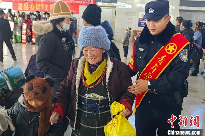 26日,為期40天的2024年春運正式拉開帷幕。春運首日,拉薩鐵路警方在西藏各大客運火車站同步開展“平安回家路、鐵警在身邊”為民實踐活動,組織黨員民警先鋒隊、青年民警突擊隊在火車站區(qū)開展志愿幫扶、反詐宣傳等活動。