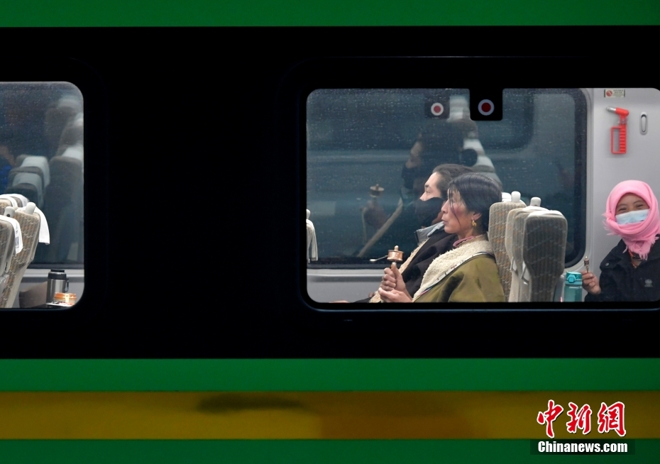 1月26日,西藏2024年春運(yùn)首日首趟列車C885次(拉薩—日喀則)即將從拉薩火車站駛出。當(dāng)日,2024年春運(yùn)大幕開啟。圖為旅客在C885次列車上等待發(fā)車。