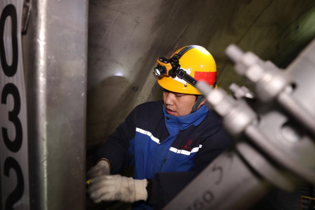 拉薩南接觸網(wǎng)維修隊(duì)工長(zhǎng)對(duì)接觸網(wǎng)設(shè)備進(jìn)行檢修(1月24日攝)。新華社記者 劉洲鵬 攝