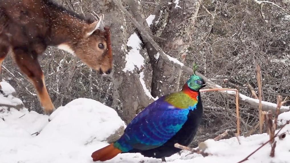 近日,“新春走基層”記者在中國與不丹交界的西藏洛扎縣拉康鎮(zhèn),拍到了喜馬拉雅斑羚和棕尾虹雉兩種珍稀野生動物同框的畫面。喜馬拉雅斑羚和棕尾虹雉均是國家一級保護(hù)動物。