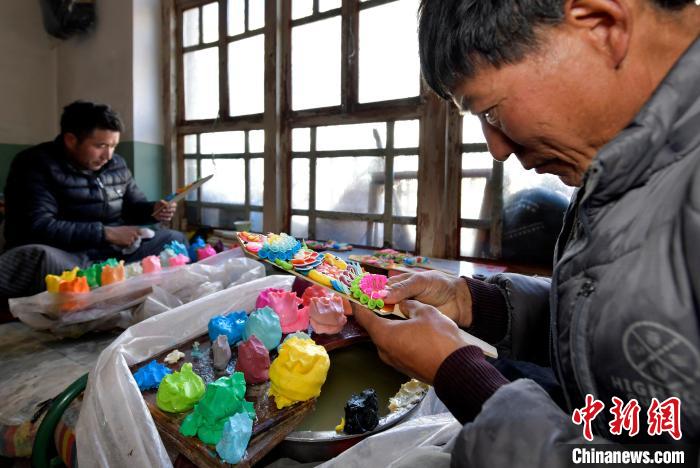 雙手被冷水泡得紅腫、雙腳一直盤腿而坐……制作過程固然辛苦,卻也讓米瑪一家收入頗豐?!爸谱鳌⑹圪u酥油花,每年人均有一萬元(人民幣,下同)左右的收入。這對于農閑時的我們來說,還是很不錯的?!泵赚斦f,接下來他會教孫輩來制作酥油花,讓年輕一代慢慢學習了解、傳承這項技藝。