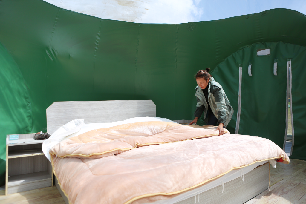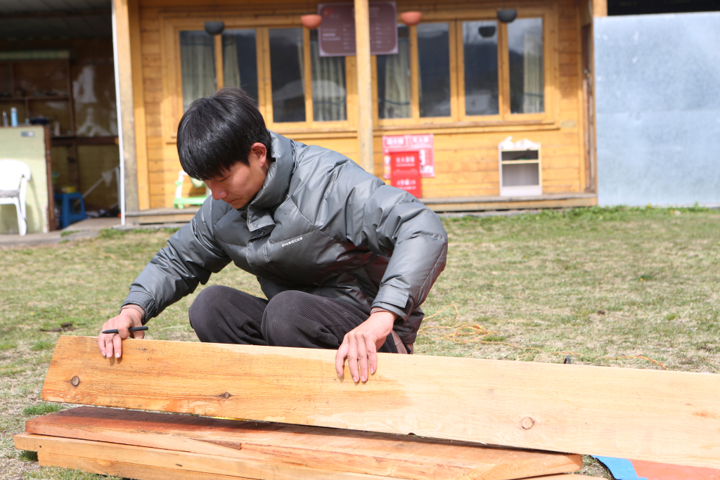 每個煙雨朦朧的清晨,都是夫妻倆最忙碌的時候。白瑪?shù)录撠熋袼薹块g內的保潔工作,丈夫殷合做一些手工活,制作民宿的木桌木椅等用具。夫妻倆就這么一天天地過著,忙得不亦樂乎。