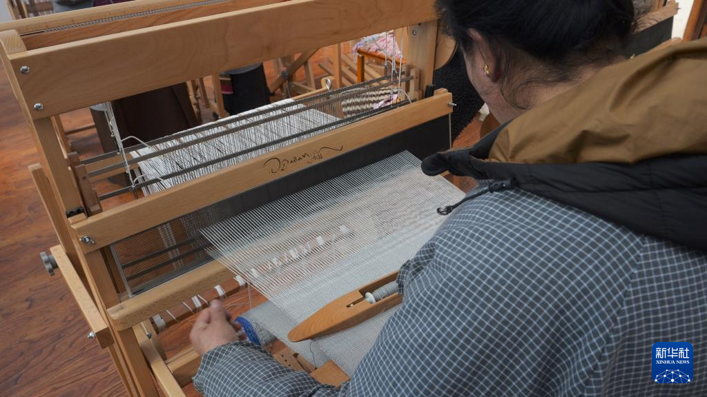 這是格桑卓瑪在幫助指導(dǎo)當(dāng)?shù)厝罕妼W(xué)習(xí)新織機(jī)用法。新華社記者 洛卓嘉措 攝