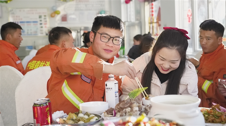 在大隊(duì)里,孫再藏與妻子一起包餃子、貼春聯(lián)、看春晚,和消防員們共同歡度佳節(jié)。除夕夜,孫再藏和妻子手挽著手,在操場(chǎng)上漫步。妻子抬頭看著丈夫,眼中充滿(mǎn)了驕傲和溫柔。她說(shuō):“你們過(guò)年還挺熱鬧的,好好站崗值班,家里不用擔(dān)心,有我呢?!?/p>