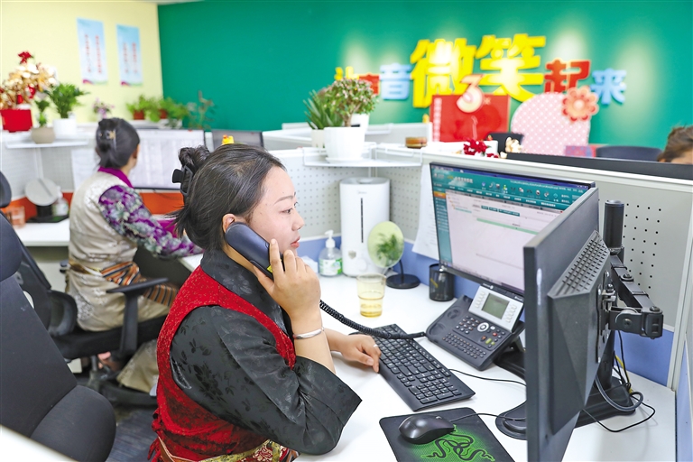 國網(wǎng)西藏電力有限公司營銷服務中心客服人員在接聽用戶電話。通訊員 旦增央卓 攝