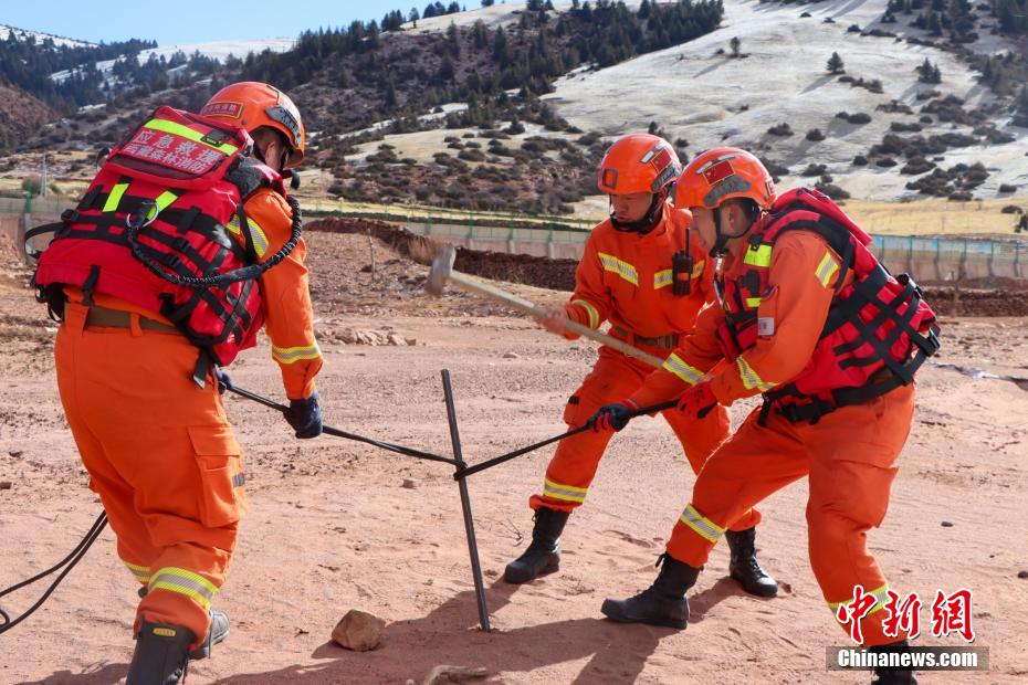 西藏芒康縣平均海拔4300多米,橫斷山脈由北向南縱貫縣境,因特殊地形導(dǎo)致山高谷深、川流密布,加之海拔較高,給各類救援帶來極大挑戰(zhàn)。此次訓(xùn)練模擬農(nóng)牧民在冰面上驅(qū)趕羊群時不慎踩破冰層掉入水中,要求救援人員快速營救。