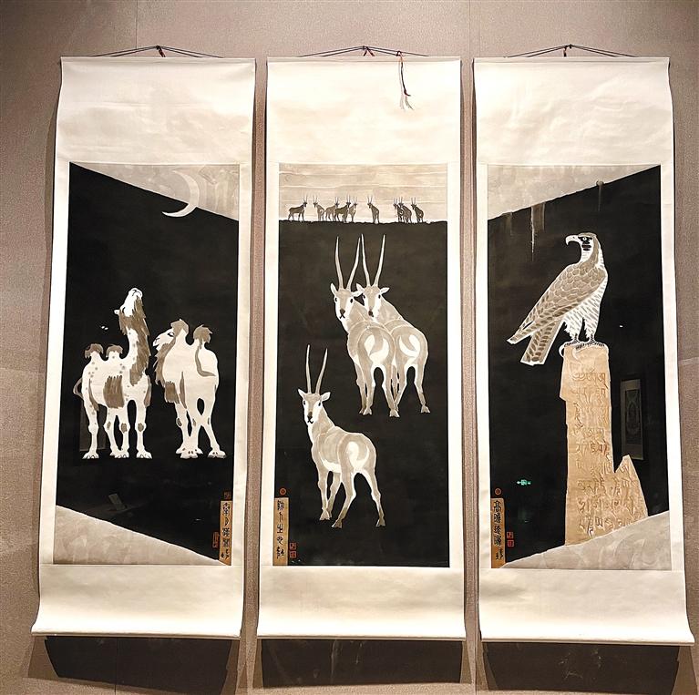 韓書力作品《喜馬拉雅八聯(lián)通景(三幅)》。記者 丹增平措 攝