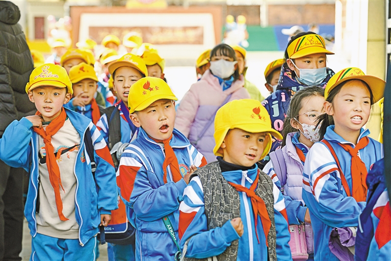 2月28日,拉薩市第一小學的孩子們上完開學第一天的課程后,開心地走出校園。記者 李洲