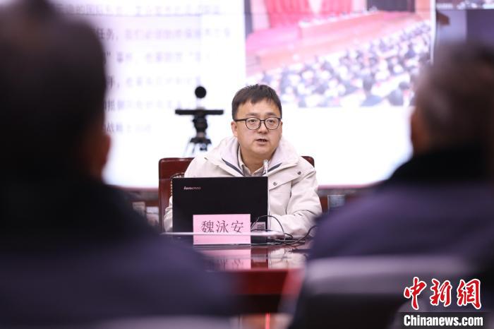 圖為四川大學(xué)馬克思主義學(xué)院魏泳安副教授通過視頻會議系統(tǒng)向阿里邊境管理支隊全體民警講授理論知識?!『『?攝