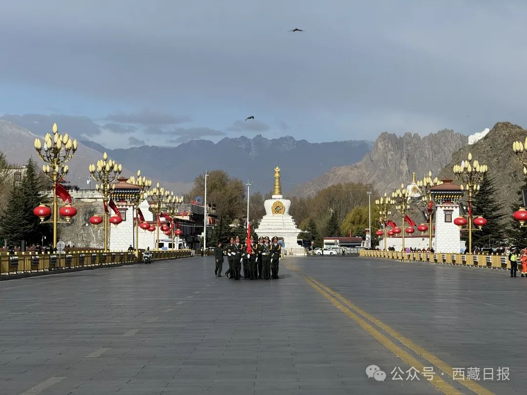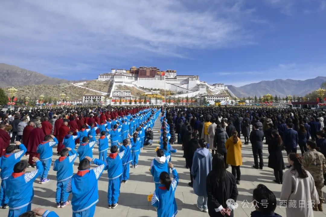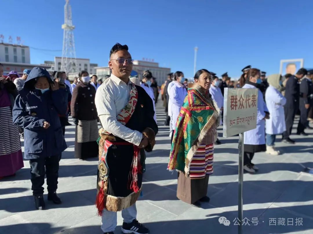 日喀則市南木林縣各族干部群眾1500余人聚集在民族團結廣場舉行紀念西藏百萬農奴解放65周年升國旗唱國歌儀式。
