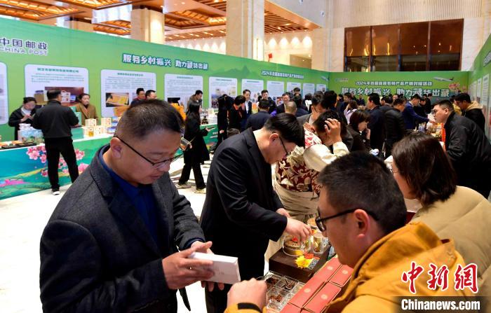 圖為高原農(nóng)特產(chǎn)品產(chǎn)銷對接活動現(xiàn)場,各省郵政公司有關負責人與企業(yè)對接。李林 攝