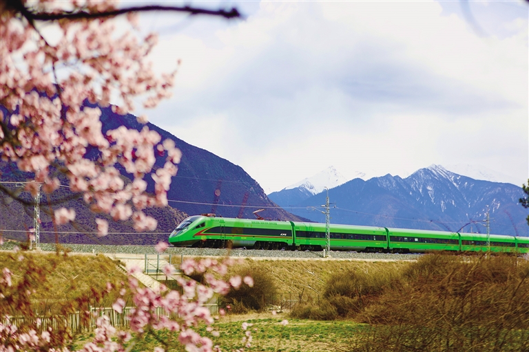 自2021年拉林鐵路開通以來(lái),“搭乘復(fù)興號(hào)去看桃花”已成為更多游客的選擇。作為連接“日光城”拉薩和“雪域江南”林芝的“新天路”,拉林鐵路串起了西藏東南地區(qū)的“精華”風(fēng)景,乘坐拉林鐵路列車,不僅能體驗(yàn)到世界最高海拔運(yùn)行的動(dòng)車速度,還可以透過(guò)車窗盡情欣賞雅魯藏布江兩岸壯觀的桃花林,飽覽雪域高原的壯麗美景。
