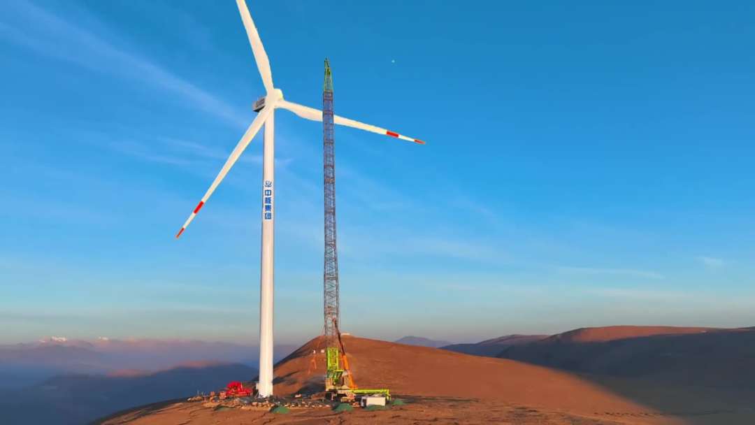 4月20日,在西藏自治區(qū)日喀則市薩迦縣的高原山地上,由中核匯能西藏公司投資、中核二二公司承建的中核集團首個在藏風(fēng)電項目——中核薩迦30萬千瓦風(fēng)光儲一體化項目風(fēng)電場首臺風(fēng)機吊裝完成。根據(jù)測算,該風(fēng)電場區(qū)最高海拔達到5193米,是目前世界上在建海拔最高、單體容量最大的風(fēng)電項目。